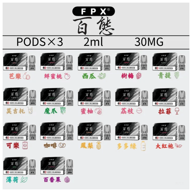 芭樂 鮮蜜桃 西瓜 樹莓 青提(白葡萄) 魔爪 蜜柚 荔枝 拉菲紅酒 可樂 咖啡 鳳梨 大紅袍 薄荷 百香果